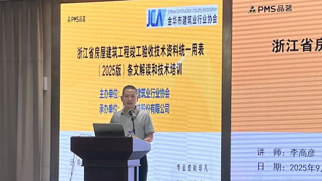 今年9月是第48个全国“质量月”。为提高全市质量意识、全面实施质量强企活动,9月4日,由金华市建筑业行业协会主办、品茗科技股份有限公司承办的“《浙江省房屋建筑工程竣工验收技术资料统一用表》(2025版)条文解读和技术培训”在金华顺利召开。金华市建筑业行业协会会长黄炜健,副会长王斌等领导参会。本次培训聚焦省内资料新规范,成功吸引了300余位行业相关人士的参与。