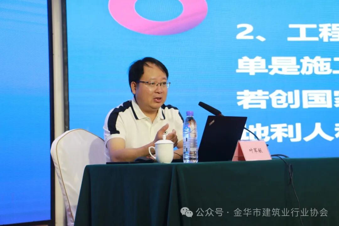 本次培训特邀原浙江省建筑业管理局副局长叶军献授课,他以“促进优质工程创建的高质量发展”为题,从宏观层面和主题策划角度,深刻阐述建设工程创优的实践经验及加强工程创优预控的一些做法等,内容丰富,深入浅出,通俗易懂,具有较强的指导性和实用性。