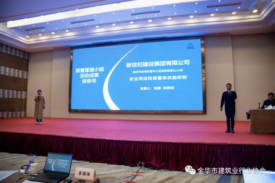 12月14日下午,金华市工程建设第二十六次质量管理小组活动成果发表会举行总结表彰大会,金华市建设局建筑业处处长吴军峰,金华市建设工程质量安全管理总站站长舒慧斌,金华市建筑业行业协会会长黄炜健、秘书长王志鹏、副秘书长薛新省、蒋贤龙出席会议,并为获奖单位和质量管理小组颁奖。评委会成员、新世纪建设集团总工程师程世韬在会上作了点评发言。