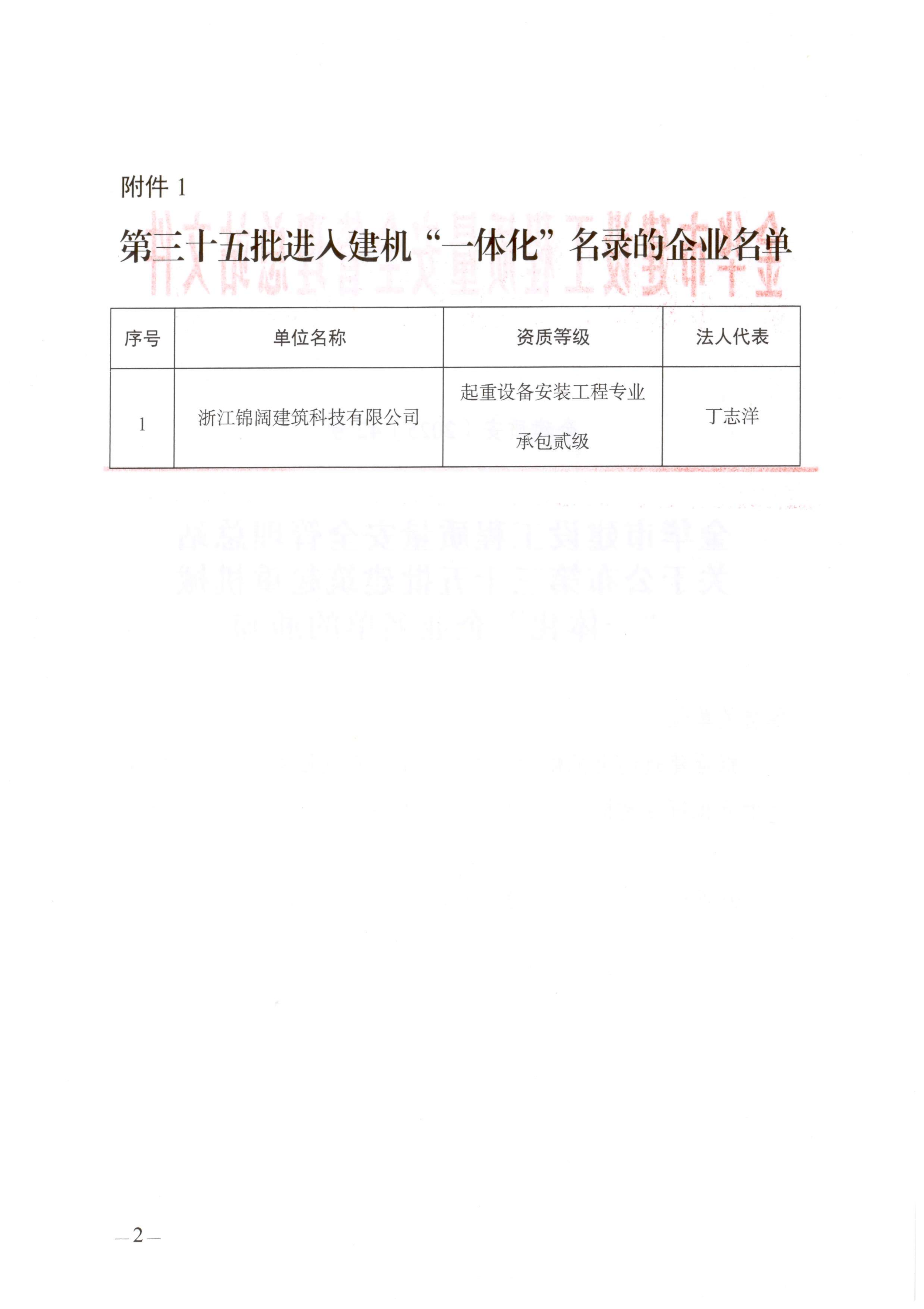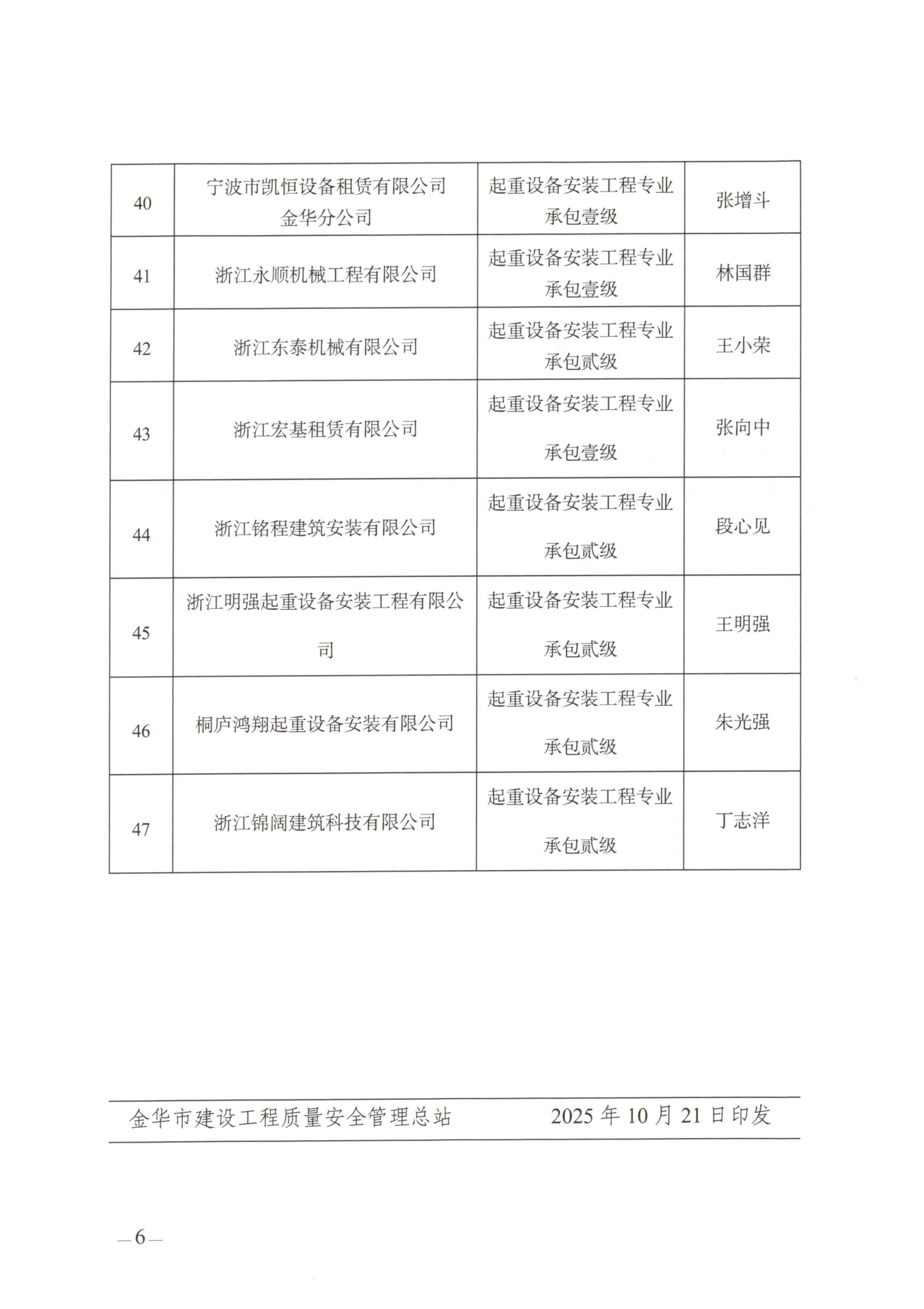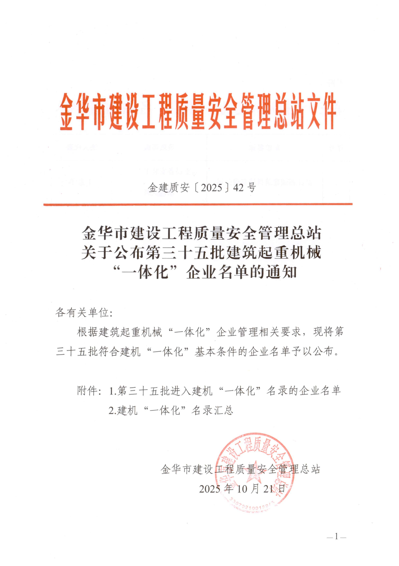 金华市建设工程质量安全管理总站关于公布第三十五批建筑起重机械“一体化”企业名单的通知