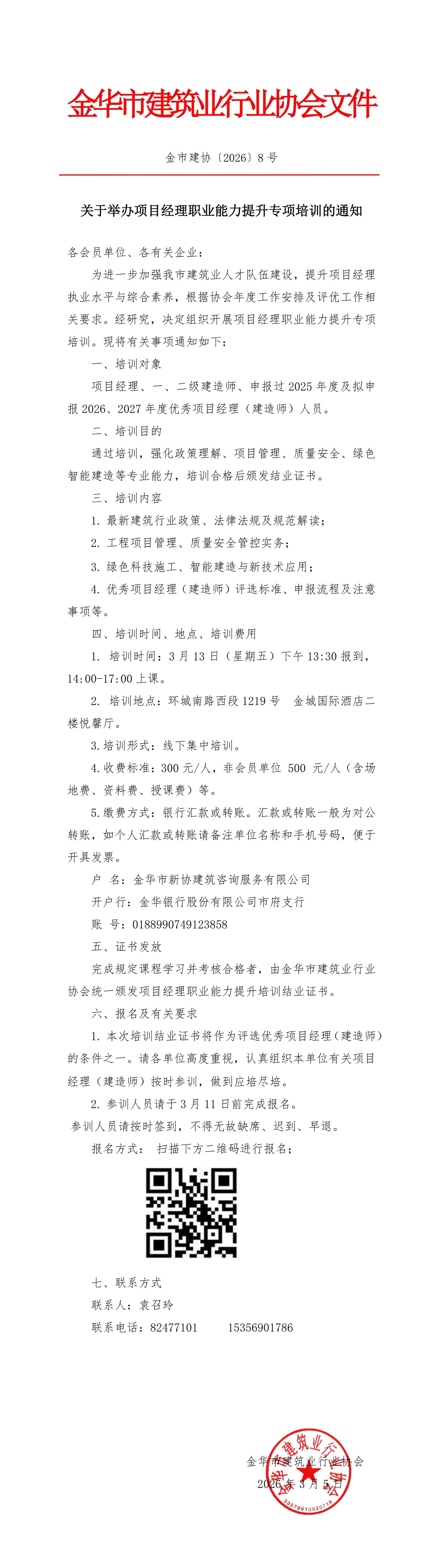 金市建协〔2026〕8 号 关于举办项目经理职业能力提升专项培训的通知