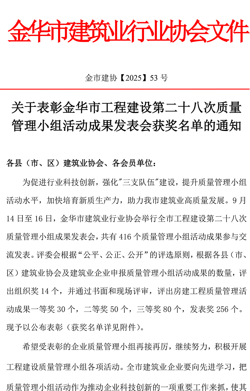 附件下载:金华市工程建设第二十八次质量管理小组成果发表会获奖名单
