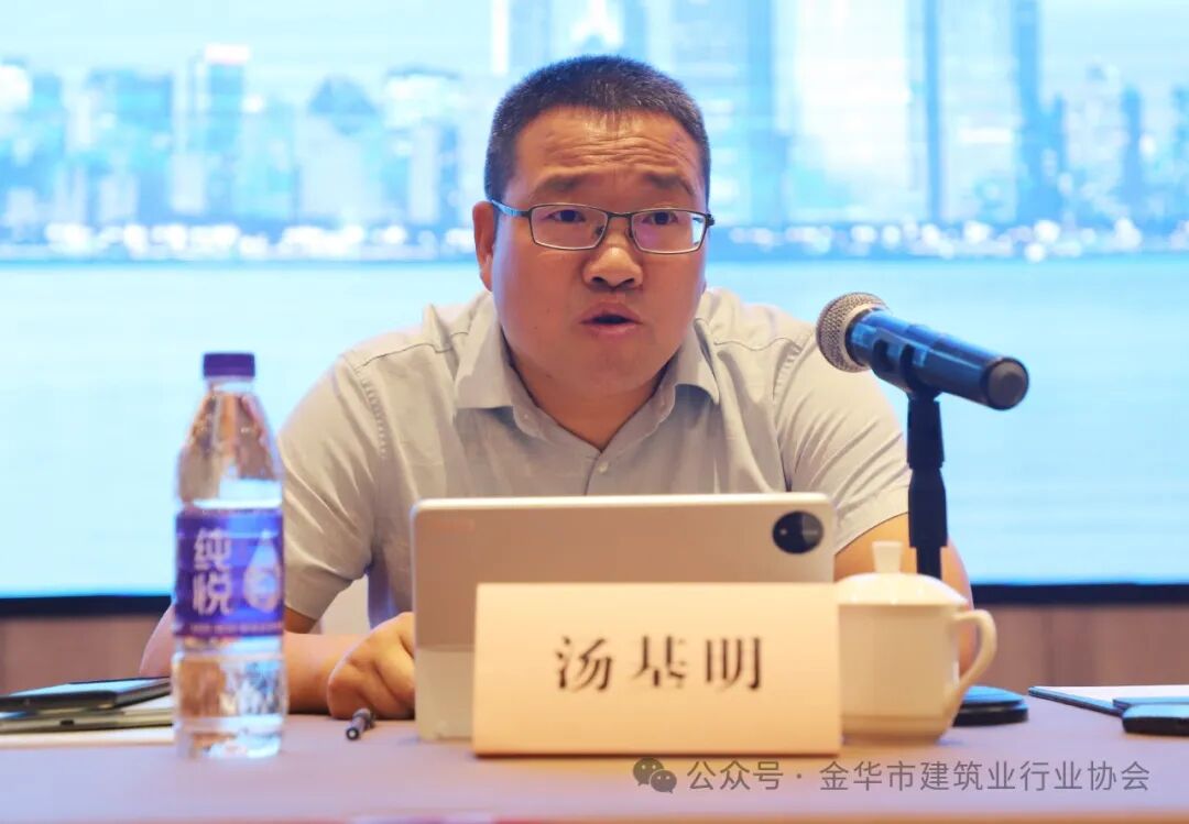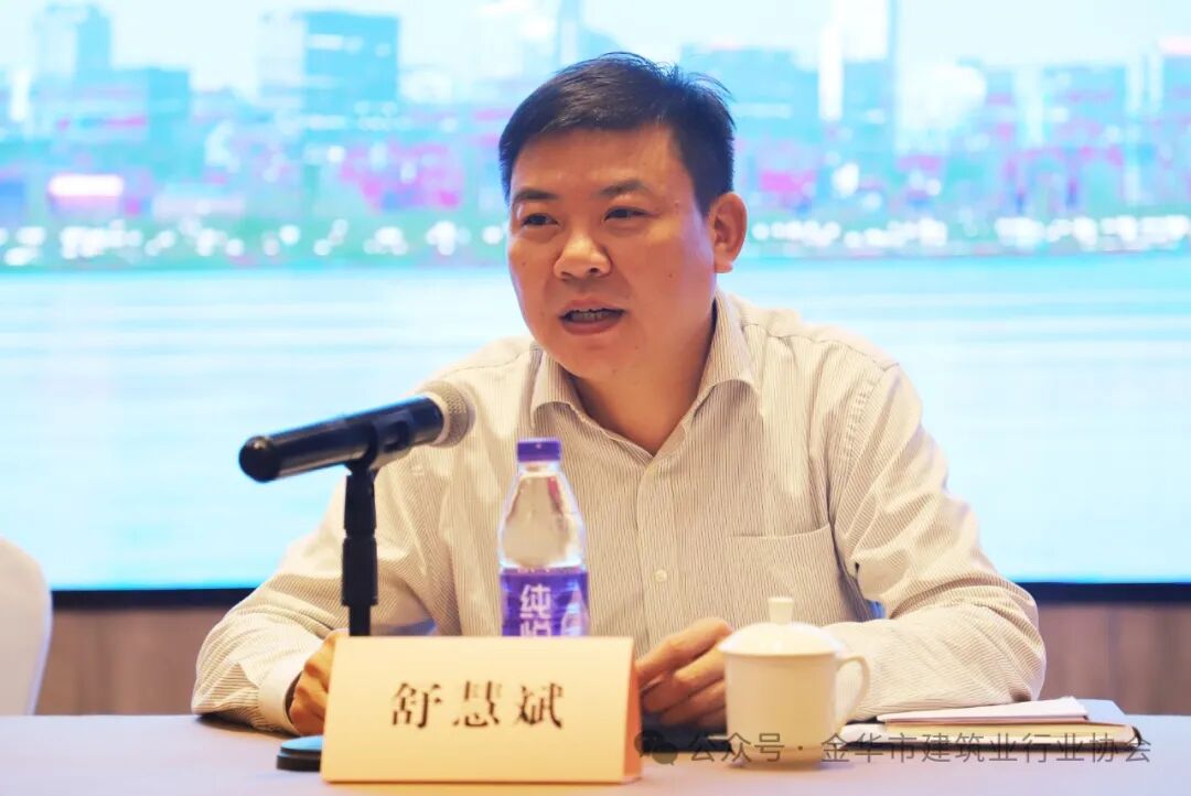 舒慧斌指出,要认清当前形势,巩固和发挥建筑业支柱产业的地位和优势。金华是建筑大市,在全市经济社会发展中的作用主要体现在四个方面,一是行业发展贡献日益增强,主要指标位列全省前列;二是质量安全管理持续加强,科技创新水平稳步提升;三是改革深化步伐加快,赋能企业健康发展;四是行业治理系统推进,营商环境明显改善。但近几年我市建筑业发展面临着许多挑战,前有标兵,后有追兵,行业瓶颈和短板凸显,形势严峻不容乐观。总体水平大而不强,产业集中度、利润率等指标出现下滑,企业“小、散、弱”现象尚未改变,同质化竞争严重,“走出去”发展心有余悸、信心不足,面临较大滑坡,行业发展缺乏高素质、复合型、技能型人才及有影响力的领军人物,发展后劲不足。舒慧斌强调,要认真贯彻落实党的二十大、二十届三中全会精神,全面深化改革,推动创新发展。我市广大建筑企业要在危机中求生存、抓机遇,只有改革才有出路,只有创新才能发展。要切实增强转型升级的紧迫感,加快建造方式转变,着力打造建筑施工产业链,努力建设人民群众满意的“好房子”。要采取有效举措拓展市场规模,鼓励规模较大、实力较强的龙头骨干企业坚定信心创造条件“走出去”发展,开拓省外、境外市场,抢占份额,打响品牌。舒慧斌强调,要提升工程品质,推动数字赋能。健全完善质量管控体系机制,促进工程质量提质增效,加强质量通病治理,用智能装备和先进信息技术提高效能。要强化“人工、材料、机械”三要素的数据统筹,真正发挥数字化应用的作用,提升项目建设和企业管理水平。舒慧斌强调,我市建筑业行业协会要充分发挥桥梁和纽带作用,增强服务意识,提升能力水平,努力当好政府和建设主管部门科学决策的“助手”、建筑业高质量发展的“推手”、建筑企业发展壮大的“推手” 。要及时总结和宣传推广示范企业的先进经验,使广大建筑企业学得了、做得到、赶得上,使重点企业增强争当全省一流、国内领先企业的“勇气”“底气” ,营造创优争先氛围,为推动中国式现代化、奋力推进我省“两个先行”,实现金华“打造国际枢纽城、奋进现代都市区”目标作出建筑业的贡献!