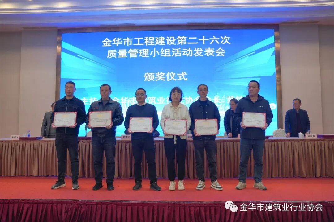 质量管理小组活动是增强企业自主创新能力的有效抓手,是推动行业和企业高质量发展的途径和载体。金华市建筑业行业协会已连续二十六年举行质量管理小组活动发表会,今年共有387个质量管理小组活动成果参与发表,有80个质量管理小组活动成果登台演讲。经评委会评审,30个质量管理小组活动成果获一等奖,45个质量管理小组活动成果获二等奖,75个质量管理小组活动成果获三等奖,237个质量管理小组活动成果获发表奖。东阳市建筑业协会、中天建设集团有限公司、新世纪建设集团有限公司、浙江新华建设集团有限公司、歌山建设集团有限公司、永润建设工程有限公司、浙江省东阳市南方建筑工程有限公司、浙江金立建设有限公司、海天建设集团有限公司、浙江省三建建设集团有限公司、金磐集团有限公司、广宏建设集团有限公司、明珠建设集团有限公司获组织奖。