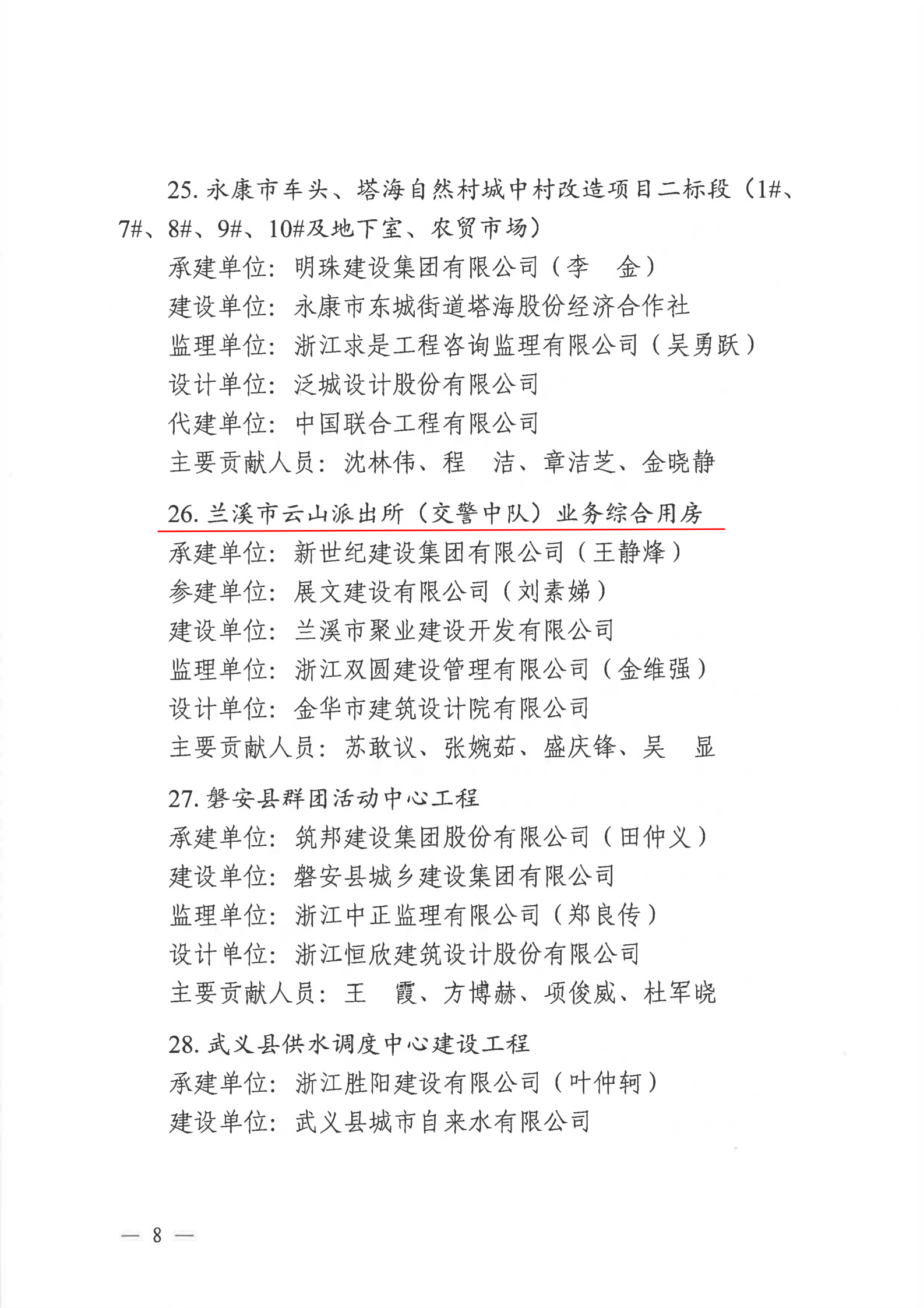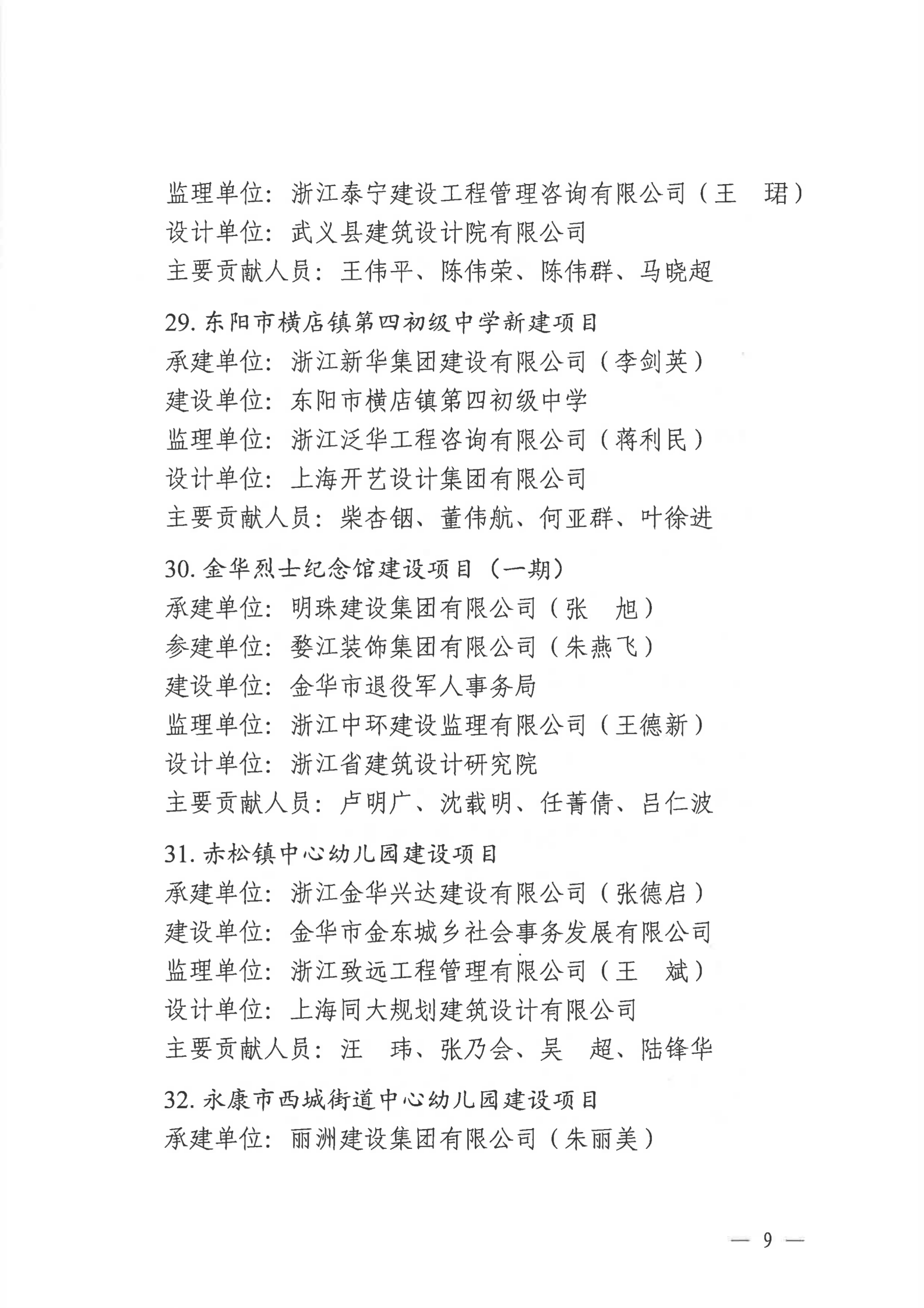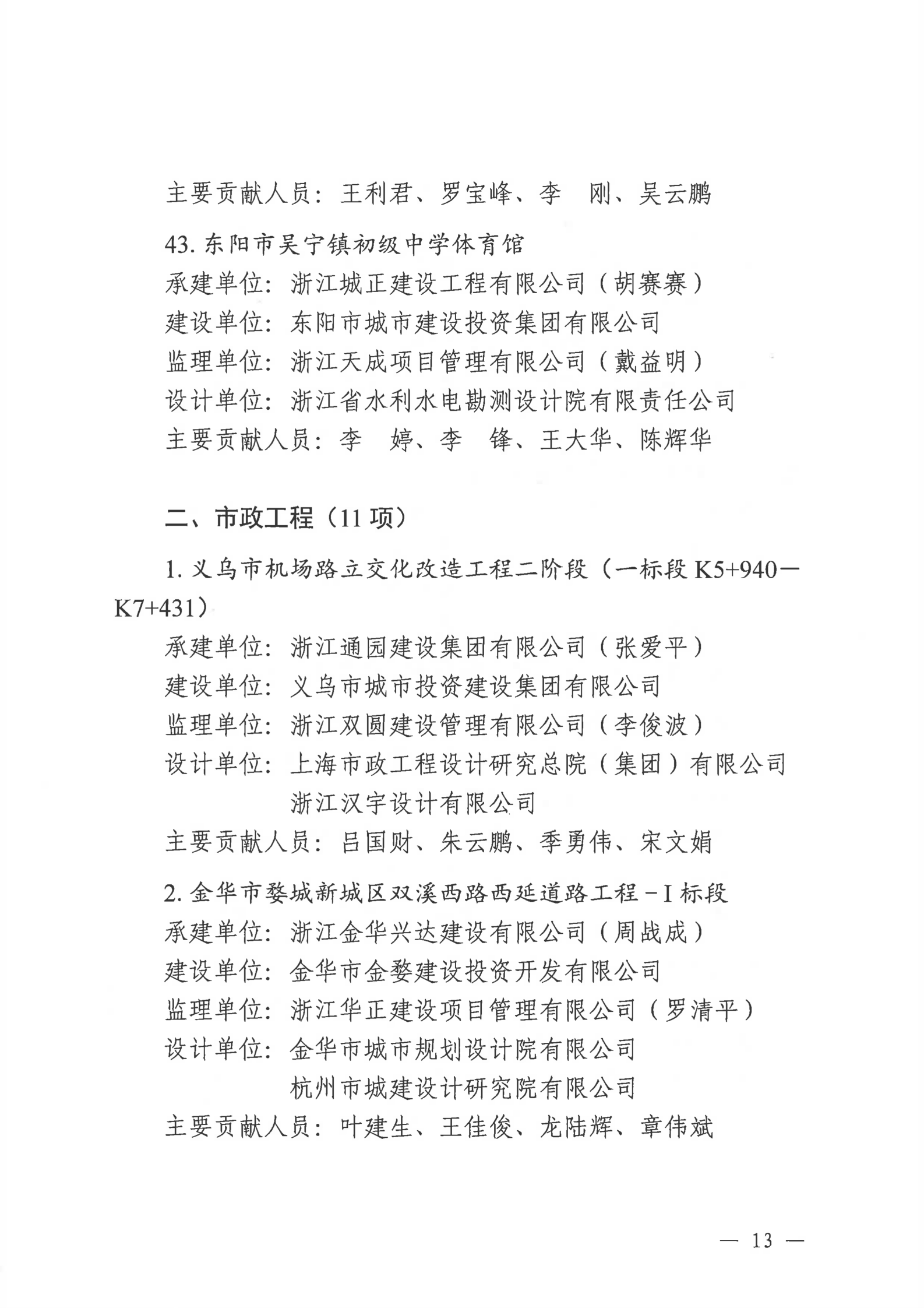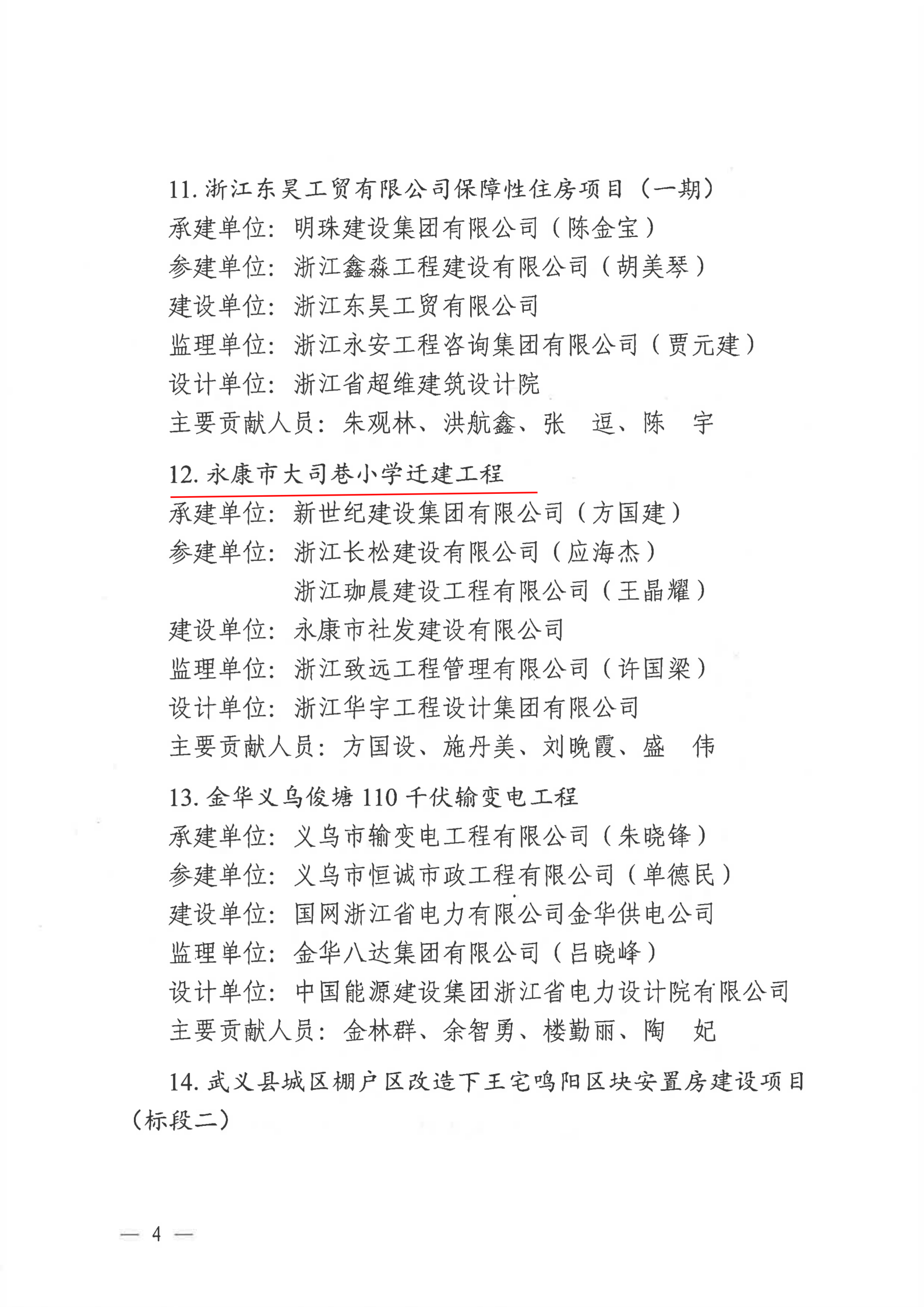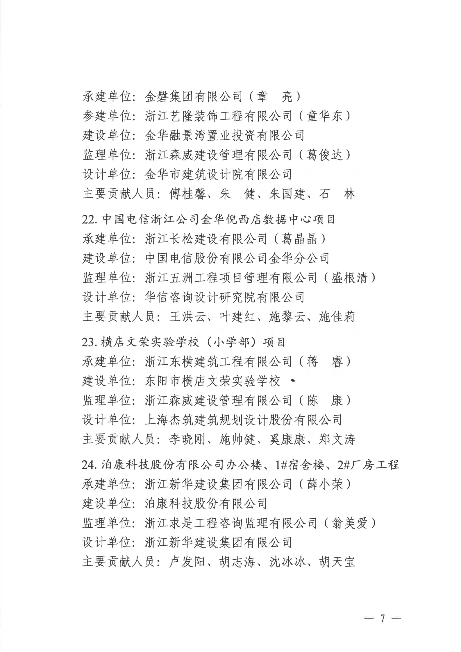 【转发】金华市住房和城乡建设局关于公布2022年度金华市建设工程双龙杯(优质工程)名单的通知
