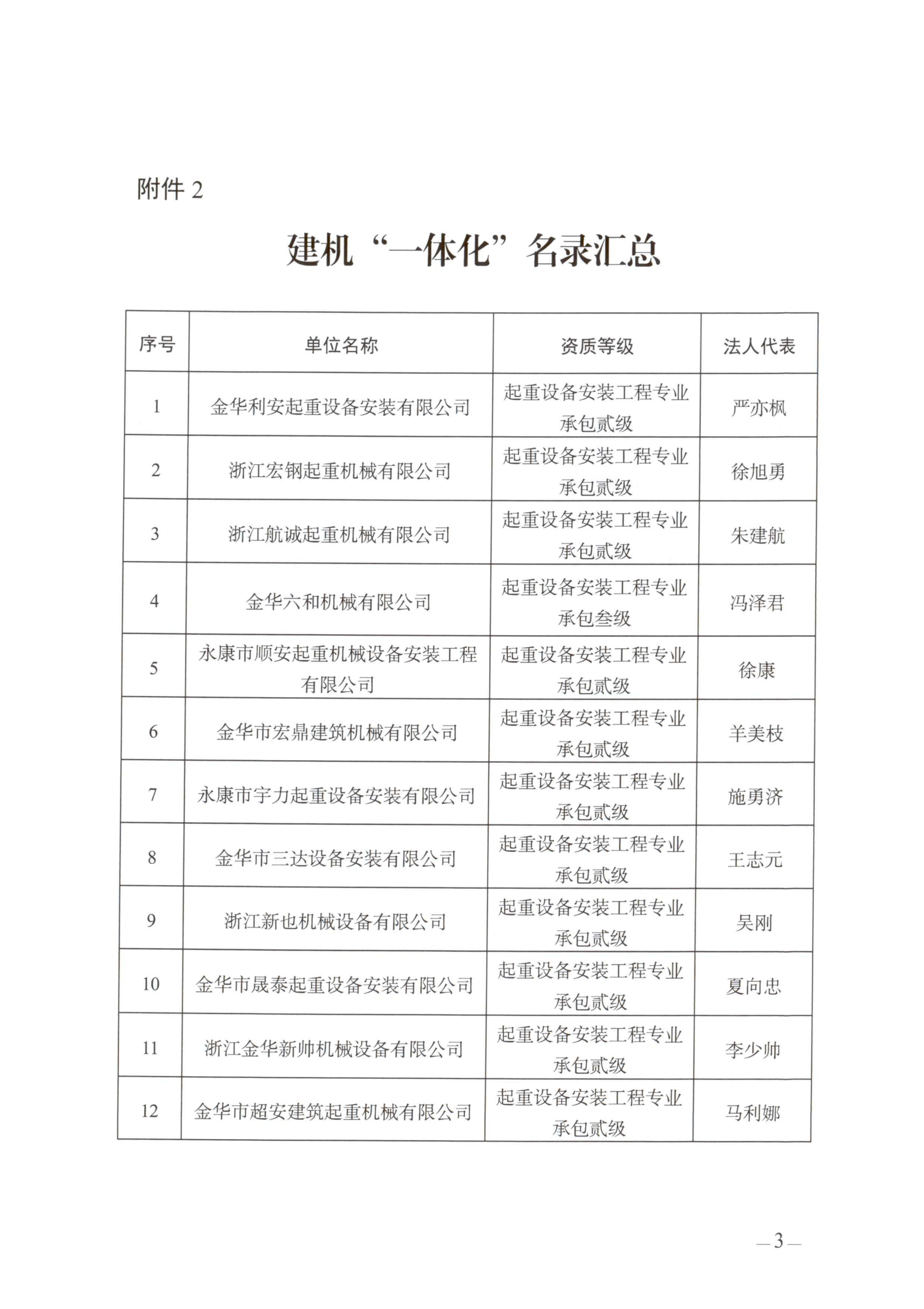 金华市建设工程质量安全管理总站关于公布第三十五批建筑起重机械“一体化”企业名单的通知