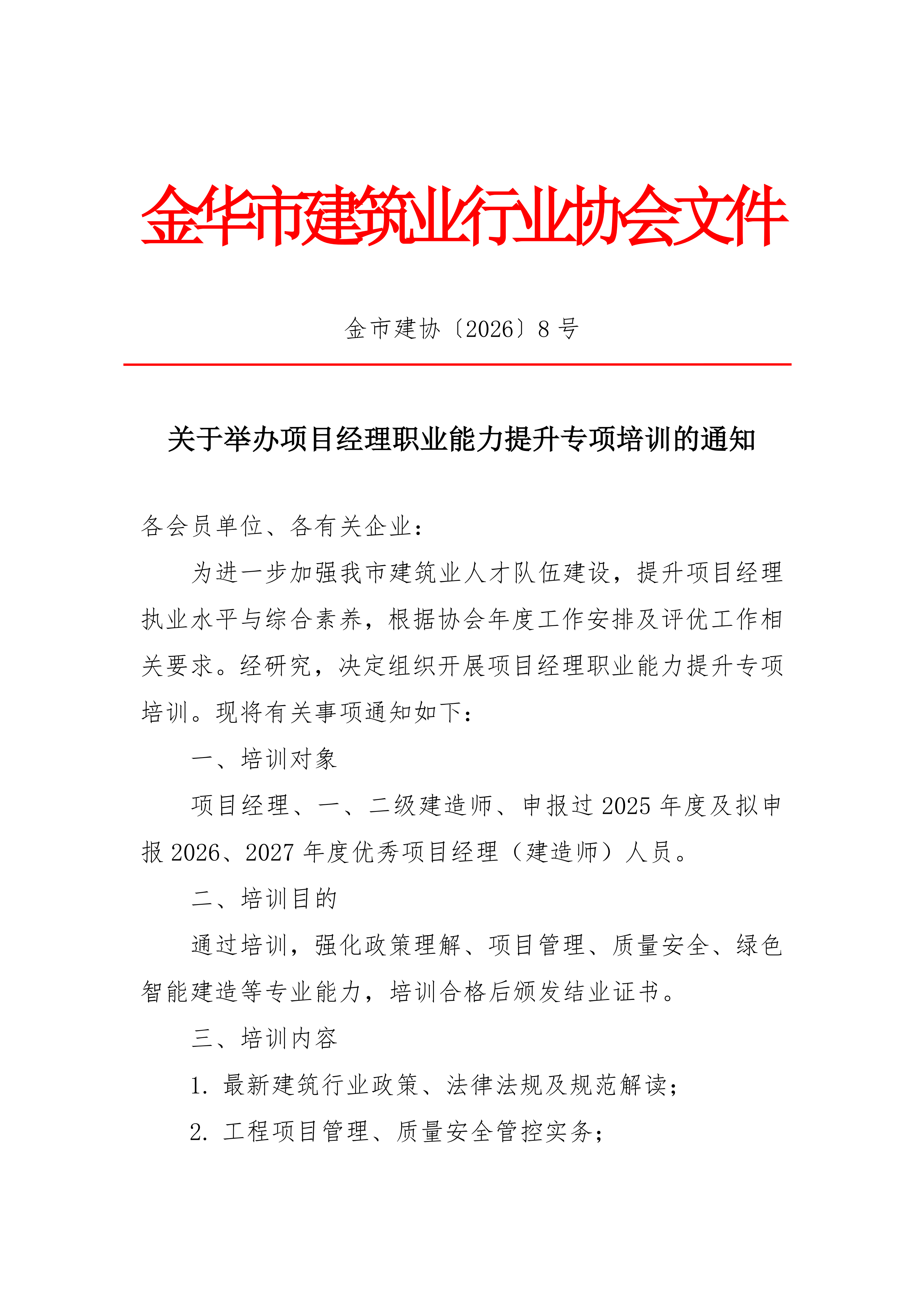 金市建协〔2026〕8 号 关于举办项目经理职业能力提升专项培训的通知